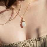 Ena 1950s Oval Crystal White Opal Doublet Pendant 14ct Gold