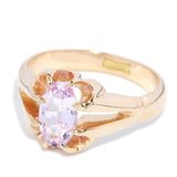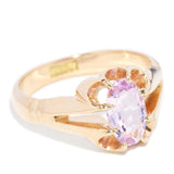Sumire unveils the soft embrace of the 1930s, her pink topaz gleaming with the dreamy allure of morning skies. Set in 15 carat gold, she cradles history in her very soul, her warmth painting whispers of nostalgia upon the skin.