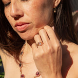 The Sumire Ring is part of our trove of strongly sustainable, environmentally friendly, and conflict-free jewellery. She lives in our carefully curated collection of one-of-a-kind vintage treasures - polished and restored with care by our talented jewellers, restoring them to their former glory.