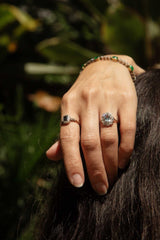 The Essence Ring is part of our trove of strongly sustainable, environmentally friendly, and conflict-free jewellery. She lives in our carefully curated collection of one-of-a-kind vintage treasures - polished and restored with care by our talented jewellers, restoring them to their former glory.