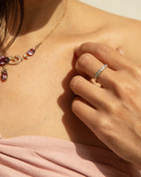 The Reina Ring is part of our trove of strongly sustainable, environmentally friendly, and conflict-free jewellery. She lives in our carefully curated collection of one-of-a-kind vintage treasures - polished and restored with care by our talented jewellers, restoring them to their former glory.