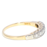 A row of seven single cut diamonds are estimated to weigh 0.14 carats, are F colour and VS to P1 clarity grades. Note: some diamonds show wear due to age