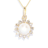 Vespera 1980s Pearl & Diamond Starburst Pendant 18ct Gold