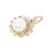 The centre round freshwater pearl measures approximately 8.0 millimetres, with good lustre, light cream colour and a lightly blemished surface. The twelve round brilliant cut diamonds are estimated to weigh 0.54 carat, with light champagne colour and SI1 to P2 clarity grade.