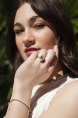 The Gianna Ring is part of our trove of strongly sustainable, environmentally friendly, and conflict-free jewellery. She lives in our carefully curated collection of one-of-a-kind vintage treasures - polished and restored with care by our talented jewellers, restoring them to their former glory.