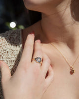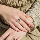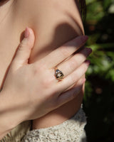 In a dance of vintage allure, the Jake ring breathes a storied past through ethereal presence. She sings with an old cut diamonds, capturing light like whispered secrets, her 9 carat gold setting timelessly tender. A star-set masterpiece, she cradles history's heart.