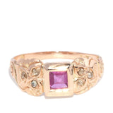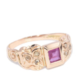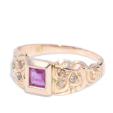 Eithne 1960s Pink Sapphire & Diamond Patterned Ring 9ct Gold