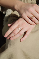 The Rosaleen Ring is part of our trove of strongly sustainable, environmentally friendly, and conflict-free jewellery. She lives in our carefully curated collection of one-of-a-kind vintage treasures - polished and restored with care by our talented jewellers, restoring them to their former glory.