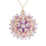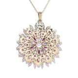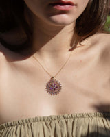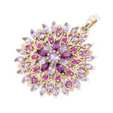 Rose 1990s Amethyst & Pink Sapphire Flower Pendant 9ct Gold