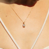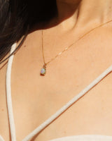 With a delightfully colourful opal, The Macy Pendant is perfect to add to your layering of fine chains. Blues and green with a hint of red flash, she is a sweet gift for the one you love.