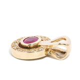 A fiery heart of crimson ruby, encircled by a halo of diamonds and captured in the warmth of 9 carat gold. Our enchanting Misha Pendant is color and light, passion and elegance, something special for your special someone.