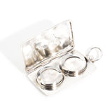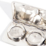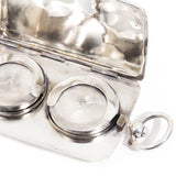 Crafted from silver, this antique double sovereign case has stood the test of time. The case is elegantly engraved with the letters JMC and opens to reveal two spring-mounted holding plates to each hold a sovereign. The Double Sovereign Case is timeless in purpose and will continue as a holder of heirloom coins. The case is beautifully stamped with the Old English hallmarks, and brings with it a world of nostalgia. It would double as a charming pendant, even without holding coins.