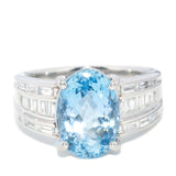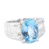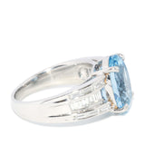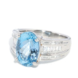 Skylar 1980s Bright Blue Aquamarine & Diamond Platinum Ring