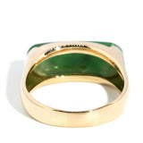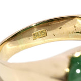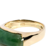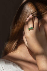Crafted in 14 carat gold, our Desiree Ring is a handsome jewel. Her forest green cabochon jade sits atop a band of high-polish gold. She is a simple yet impressive design that invites the wearer to be, like her, bold.