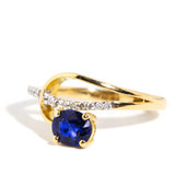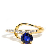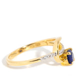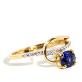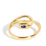 Eleni 1980s Blue Sapphire & Pave Set Diamond Ring 18ct Gold