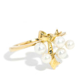 Wrapped in golden ribbon and bows, our Acadia Ring is a sweet adornment. Crafted in 18 carat gold, she is embellished with satiny pearls, a darling way to show someone how much you care.