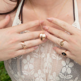 The Marnie Ring is part of our trove of strongly sustainable, environmentally friendly, and conflict-free jewellery. She lives in our carefully curated collection of one-of-a-kind vintage treasures - polished and restored with care by our talented jewellers, restoring them to their former glory.