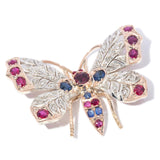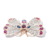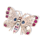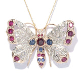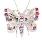 Betsy Antique Ruby Sapphire Diamond Butterfly Pendant 9ct Gold