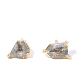Petra, a pair of contemporary kite cut studs, sparkles with the unique allure of salt and pepper diamonds, cradled in the warmth of 9 carat gold.