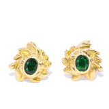 Kate, a pair of vintage swirl stud earrings, cradles oval cut green tourmalines in the warm embrace of 18 carat gold, a testament to time's gentle passage.