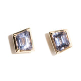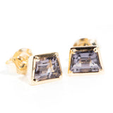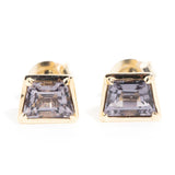 Our Mathilde 9ct yellow gold stud earrings are each set with a bright light purple spinel in an elegant trapezoid cut. Together, the gemstones total 1.23 carats, displaying crisp symmetry and a soft violet brilliance that shifts subtly with the light. Modern in profile yet timeless in style, these studs offer understated sophistication and a distinctively contemporary edge.