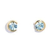 Crested moons of 14 carat yellow gold frame the beauty of serene summer skies in our Meredith Earrings. Her topaz capture the light, a contrast of warm gold and ice blue. A simple yet elegant design, perfect for your perfect someone.