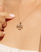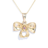 Adorn yourself with this exquisite 1990s diamond bow pendant in rich 9 carat gold, a celebration of elegance and whimsy. The shimmering diamonds dance with light, echoing the joy of new beginnings. Each curve tells a story of artistry, inviting the modern wearer to embrace nostalgia while indulging in the luxurious embrace of this enchanting piece.