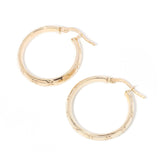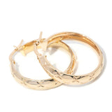 Mavis, a pair of 1990s star engraved hoop earrings, crafted from radiant 9 carat yellow gold, encapsulates the bold spirit of their era.