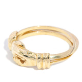Valentin, a three-section heart ring from the vibrant 1980s, intertwines elegance and symbolism with open hands delicately sculpted in gleaming 9 carat gold.