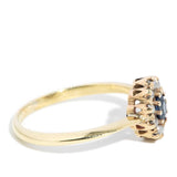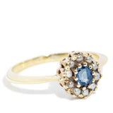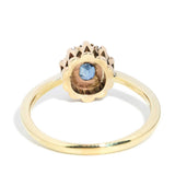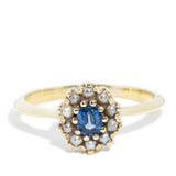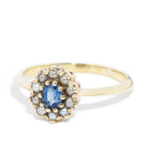Lovingly crafted in 14 carat yellow gold, we have named her Hazel. Her bright blue sapphire rests in a halo of satiny seed pearls, the sweetest adornment. She will be a treasured inclusion in your jewellery collection for generations to come.