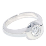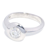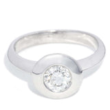 In the realm of contemporary splendour, the Cassandra ring captivates with her 18 carat white gold form, cradling a radiant diamond embraced in a bezel setting. She reflects the moon's opulent embrace, her lineage forged by artisans weaving recycled brilliance from earth's cherished echoes.