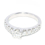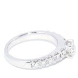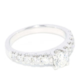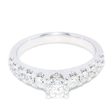 The central round brilliant cut diamonds is estimated to weight 0.42 carat with G colour and P1 clarity grade. The ten round brilliant cut shoulder diamonds are estimated to weight 0.47 carats, with a F to G colour and SI2 to P1 clarity grade.