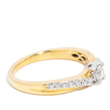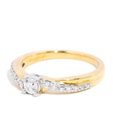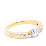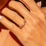 Our exquisite 18 carat gold Igraine Ring is a symphony of elegance and sparkle. A delicate ribbon of diamonds intertwines with gold in a graceful crossover design, creating a captivating frame for her brilliant centre diamond. She is a testament to the artistry of fine jewelry, a jewel that will be cherished for generations to come.