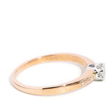 Crafted in 18 carat rose gold, our Coleen Ring is an abiding classic. Her sparkling diamond is lifted above a band embellished with diamonds on either side. A sweet way to make promises for your heart to keep.