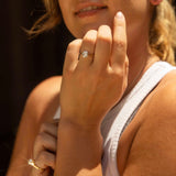 The Jaxtyn Ring belongs to our treasure trove of strongly sustainable, ethical, environmentally friendly, and conflict-free jewellery. She lives in our carefully curated collection of one of a kind vintage jewellery pieces. A vintage piece of jewellery has many stories to tell. Tales of romance, love, family, happiness and sometimes loss and endurance. Handed down from person to person, generation to generation. The Jaxtyn Ring is a piece of wonderful history.