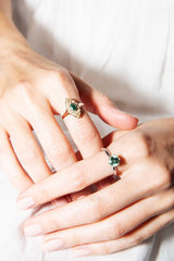 The Midori Ring belongs to our treasure trove of strongly sustainable, ethical, environmentally friendly, and conflict-free jewellery. She lives in our carefully curated collection of one of a kind vintage jewellery pieces. A vintage piece of jewellery has many stories to tell. Tales of romance, love, family, happiness and sometimes loss and endurance. Handed down from person to person, generation to generation. The Jasmine Ring is a piece of wonderful history.