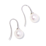 Patricia, a pair of South Sea pearl drop earrings, dangles gracefully from delicate hooks, their splendour set in 18 carat white gold.