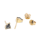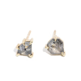 The Adina stud earrings hold a duet salt and pepper kite cut diamonds, a contemporary wonder in radiant 9 carat gold.