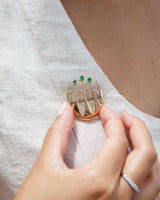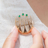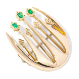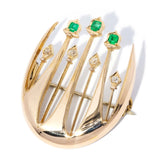 Fernie Art Deco Handmade Emerald Diamond Brooch 15ct Gold