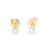 Blany, a dazzling pair of solitaire studs showcasing round brilliant diamonds in classic claw settings, exudes timeless elegance in rich 18 carat gold.
