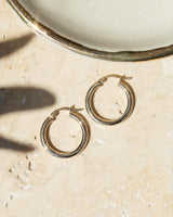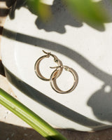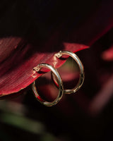 In the dance of sunlight, the Macie earrings glimmer, vintage darlings crafted from 9 carat gold. Echoing whispers of elegance, their graceful three-quarter hoops cradle the ear, secured with an enchanting lever back and weaving stories of yesteryear's artisans in their lustrous embrace.