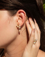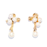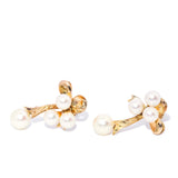 Francine, a pair of 1950s ribbon-style studs, features eight luminous cultured pearls delicately poised in lustrous 9 carat gold, evoking an air of refined grace.