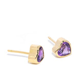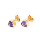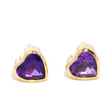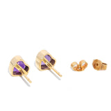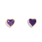 Violet, a radiant pair of 1980s amethyst heart studs, is set in 9 carat yellow gold, offering a glimpse into a vibrant past.