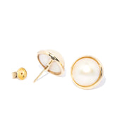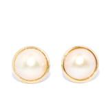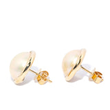 The Marlowe Earrings, exquisite pearl studs featuring luminous Mabe pearls nestled in warm 9 carat yellow gold bezels, resonate with the charm of a timeless treasure.