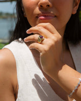 The Shoshanna Ring is part of our trove of strongly sustainable, environmentally friendly, and conflict-free jewellery. She lives in our carefully curated collection of one-of-a-kind vintage treasures - polished and restored with care by our talented jewellers, restoring them to their former glory.