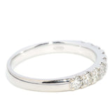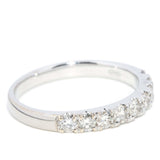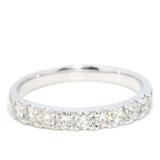 Ana, a breathtaking half eternity ring graced with mesmerizing diamonds, is crafted in 18 carat white gold, exuding an aura of modern sophistication.
