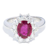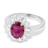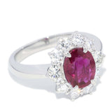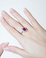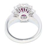 Maya 1990s Pinkish Red Ruby & Diamond Platinum Halo Ring