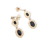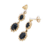 The four oval black sapphires in the tops of the earrings measure 5.00x3.00 millimetres. The ones in the lower section measure 7.00x5.00 millimetres.