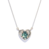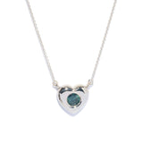 Cynthie, an exquisite petite heart pendant crafted from 9 carat white gold, cradles a darling teal sapphire at her centre, capturing a fleeting moment of pure beauty.