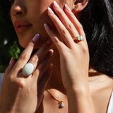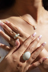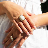 The Melena Ring belongs to our treasure trove of strongly sustainable, ethical, environmentally friendly, and conflict-free jewellery. She lives in our carefully curated collection of one of a kind vintage jewellery pieces. A vintage piece of jewellery has many stories to tell. Tales of romance, love, family, happiness and sometimes loss and endurance. Handed down from person to person, generation to generation. The Melena Ring is a piece of wonderful history.